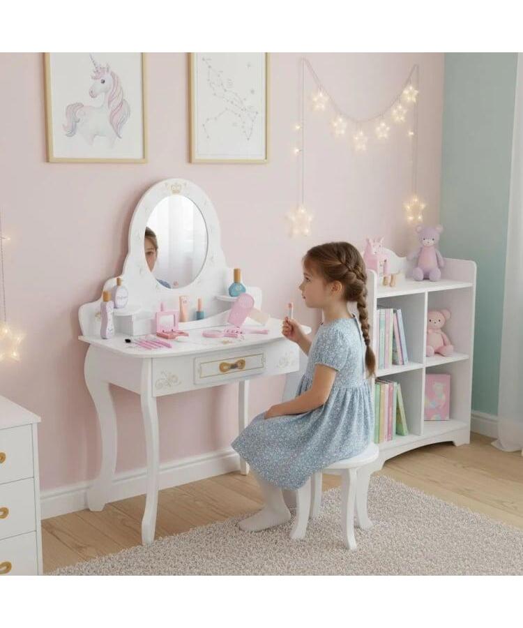 Veliki drveni toaletni sto za decu sa ogledalom i roze dodacima W08H188B