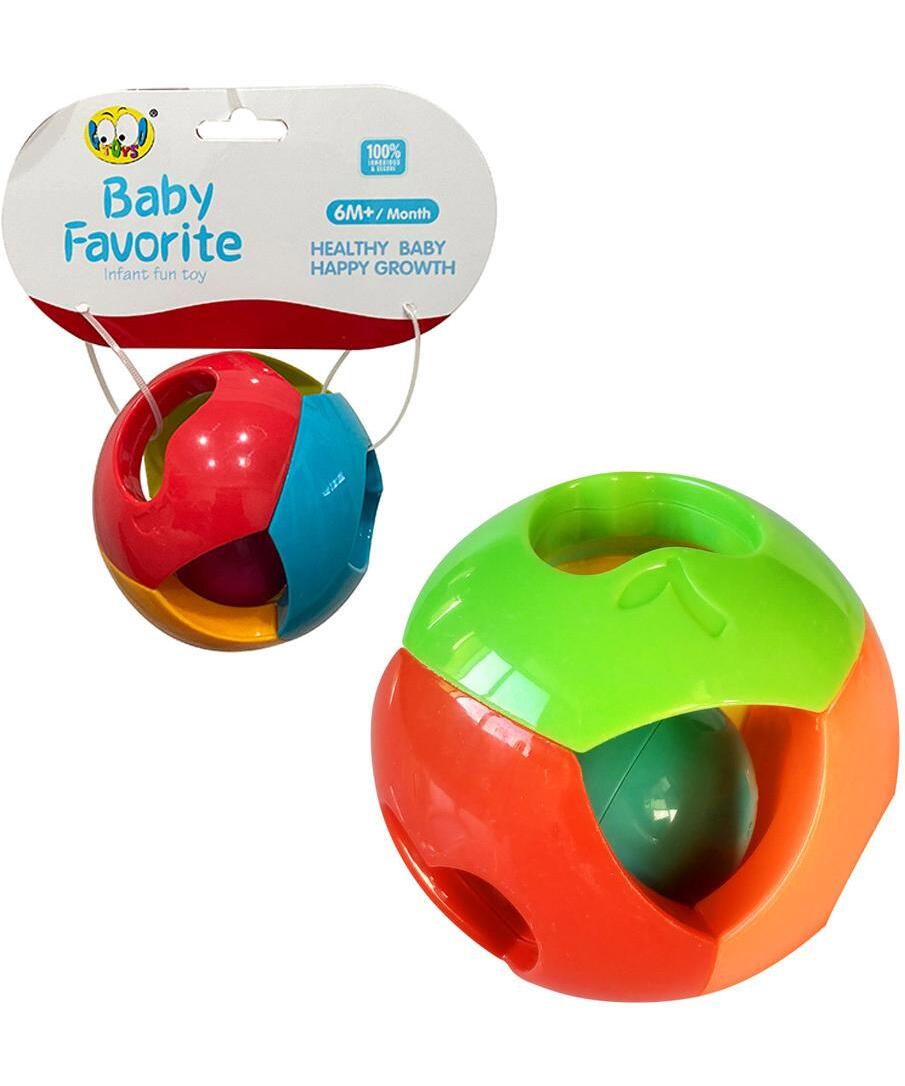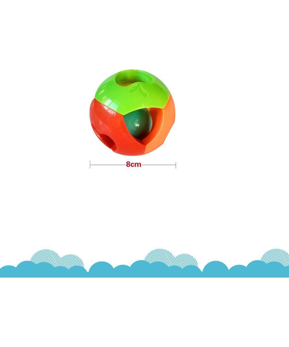Unutar lopte nalazi se mala kuglica koja pri pokretu proizvodi zveckavi zvuk i privlači pažnju deteta.