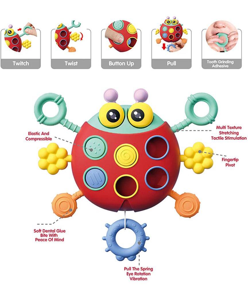 Set uključuje 1 Montessori silikonsku igračku za povlačenje, koja obezbeđuje beskrajne sate bezbedne i zanimljive igre. Deca mogu da okreću zupčanike, povlače iste ili pritiskaju kružne tastere.