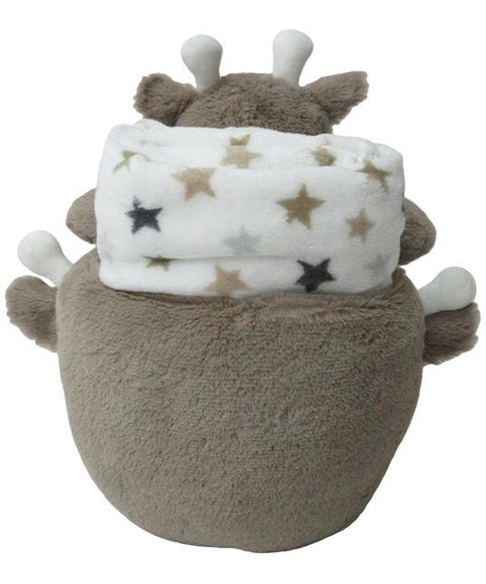 U naručju ove igračkice se nalazi nežno ćebence. Savršeno je za pokrivanje u kolicima, krevetiću ili kao mekana podloga za „tummy time“ vežbe.