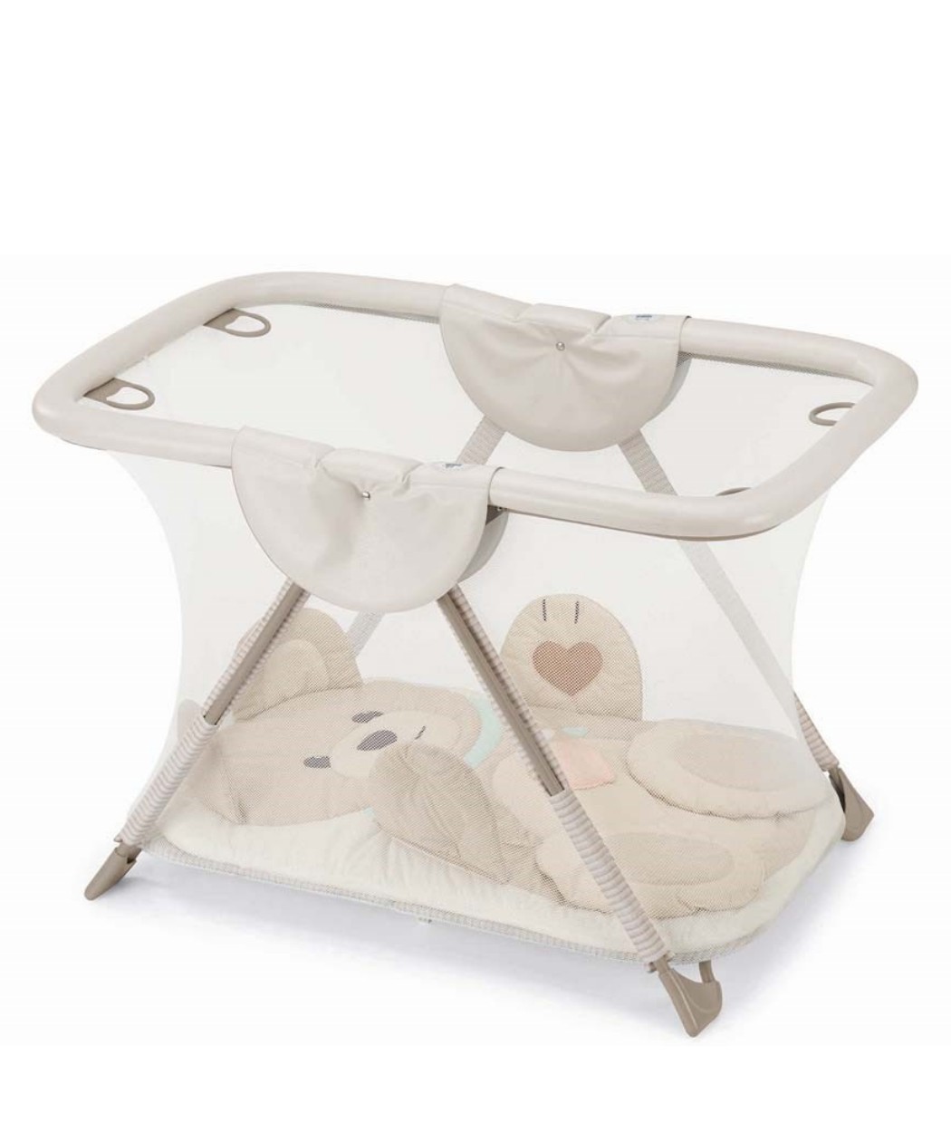 Sigurnost: • Prema evropskoj regulativi: EN 12227-1/2 • Uzrast: idealno za bebe do 15 kg • Test na ugriz: sproveden za ogradi, koja je napravljena od otpornijeg pvc. Cilj je da se dete spreči da zubima kida pvc • Testiranje stabilnosti bočne, prednje i zadnje strane, radi zaštite deteta od prevrtanja • Testiranje cucle, kako ne bi ostala zaglavljena u nekom od delova • Dinamičko testiranje udara: sprovedeno radi provere otpornosti postolja • Potpuno netoksično (EN 71), bez ftalata (direktiva 2005/84/CE)
