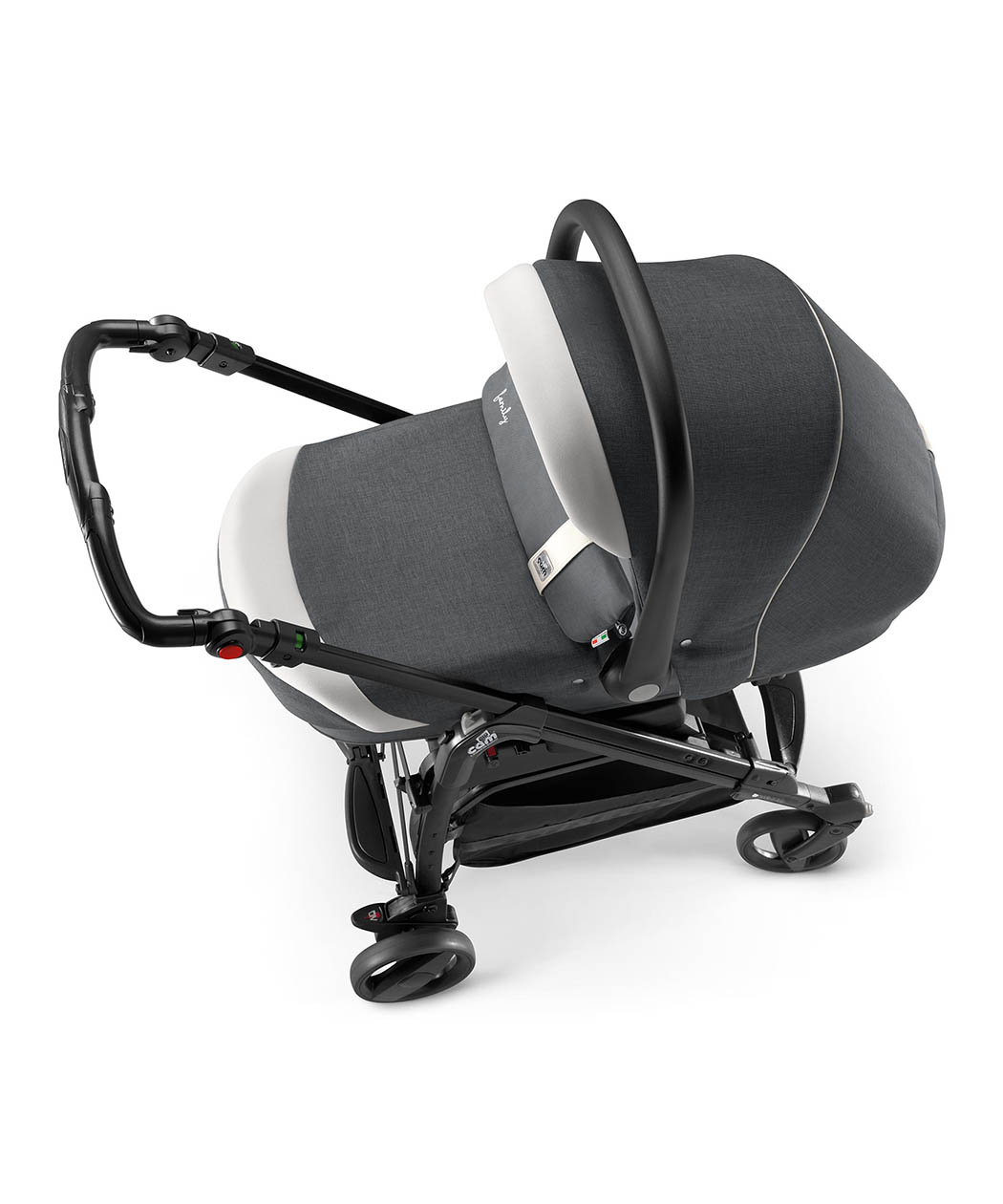 • Aluminijumski ram sa sedištem koje se može okrenuti u oba pravca (licem unazad za bebe od 0-12 meseci i unapred od 12-36 meseci) pomo?u patentiranog Via Vai sistema