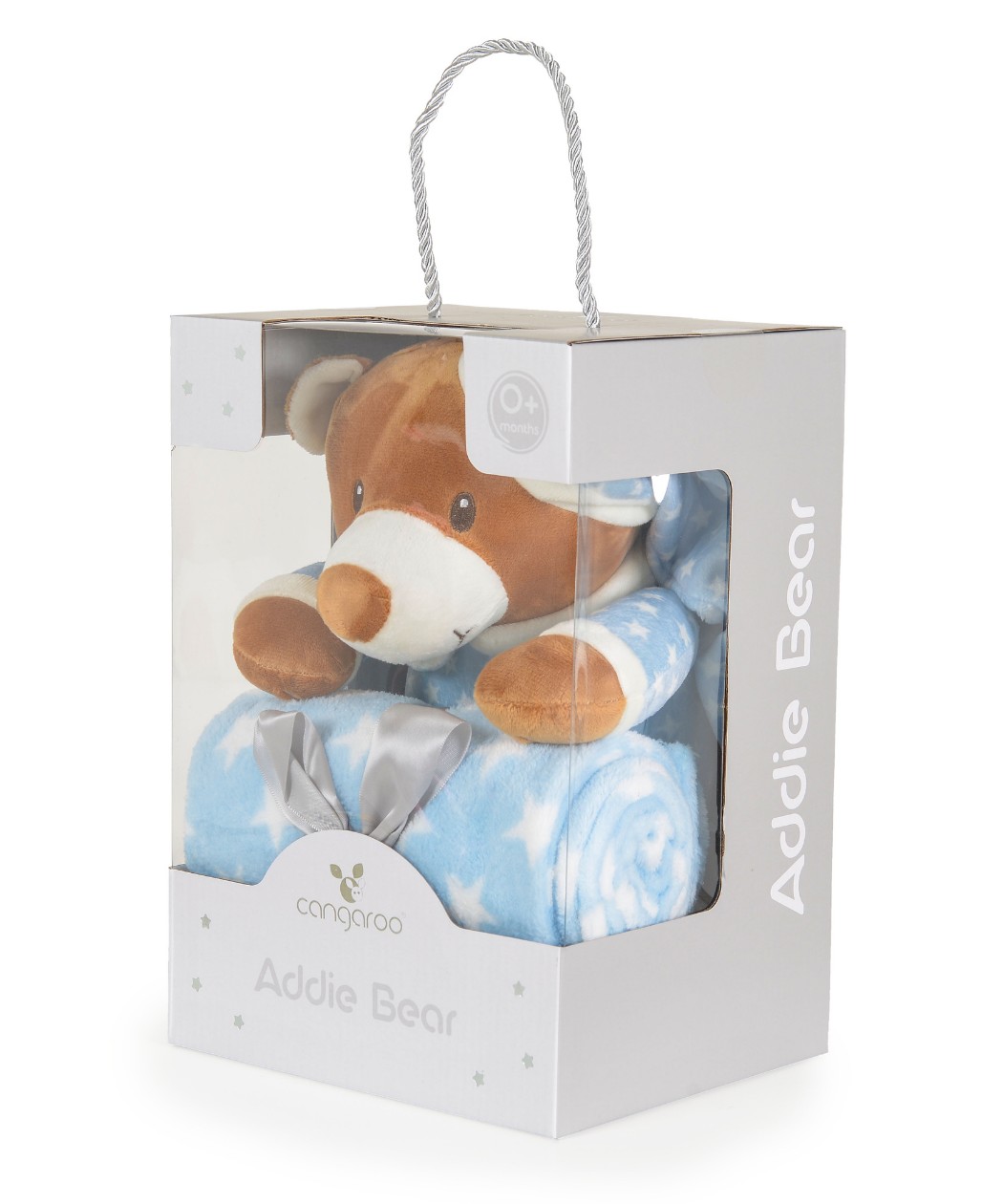 Naziv proizvoda: Cangaroo ćebence za bebe sa plišanom igračkom 75x90cm Addie Bear Blue