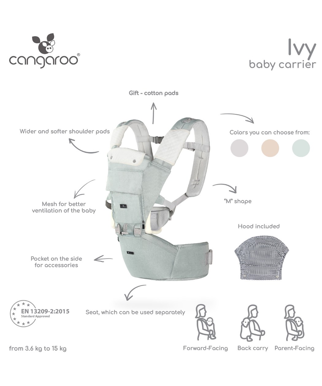 Ravnomerno raspoređuje težinu deteta bez opterećenja leđa i struka roditelja. Pogodno za ručno pranje. Dužina kaiša: 123 cm.