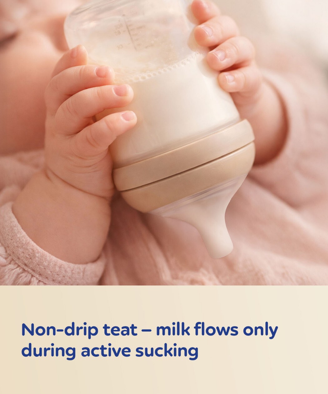 • Smanjuje rizik od odbijanja dojke jer su obrasci sisanja na flašici i dojci komplementarni.