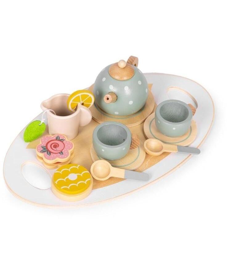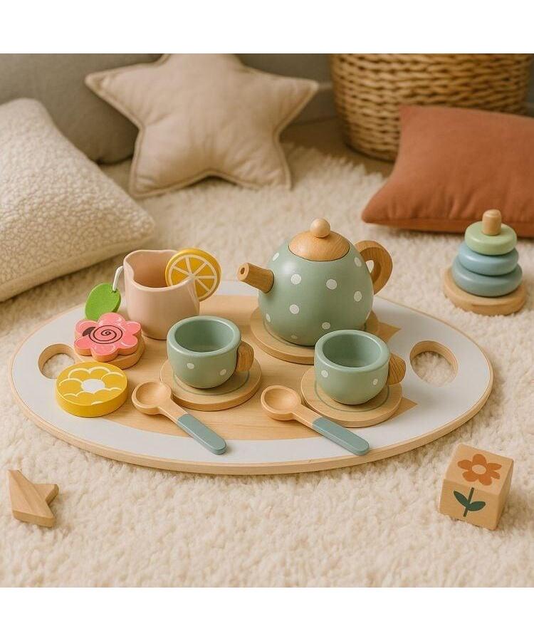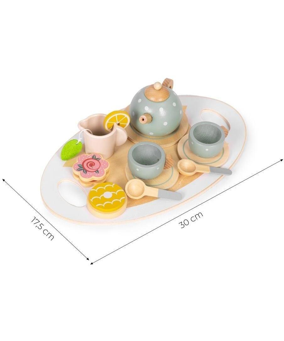 Drveni set za čaj marke ECOTOYS savršen je izbor za decu stariju od 3 godine koja vole kreativnu igru i igranje uloga. Svi elementi izrađeni su od prirodnog, za decu bezbednog drveta, a zaobljene ivice i pažljiva završna obrada obezbeđuju udobnost i sigurnost tokom svakodnevne igre. Set je odličan dodatak dečijoj kuhinji, prodavnici ili kućnom kafiću, unoseći više realizma i zabave u dečije igre.