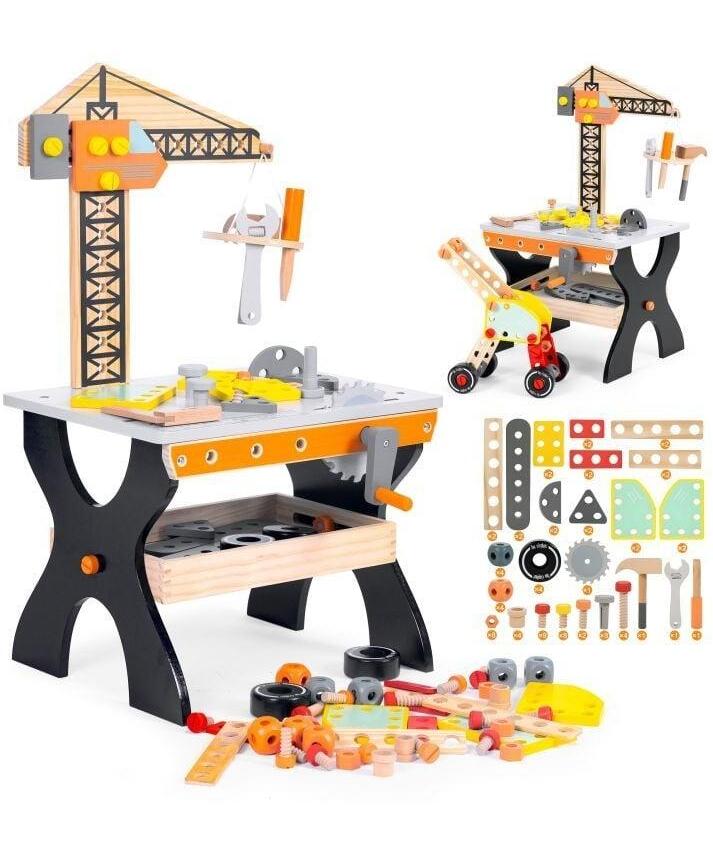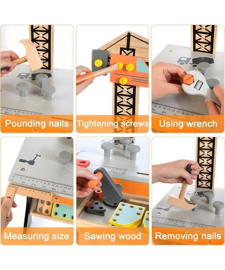 Napravljena od izdržljivog drveta, garantuje bezbednost i dugotrajnu upotrebu. Radionica je savršena za igru kod kuće, uči decu osnovnim tehničkim veštinama i pruža kreativnu zabavu.