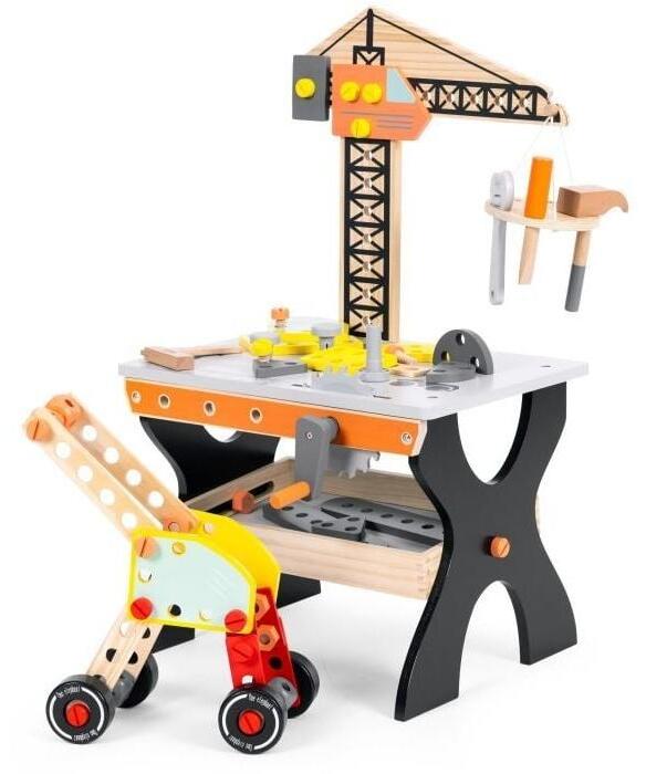 Drvena radionica za decu ECOTOYS je idealna igračka za male majstore. Opremljena je radnim stolom i raznim dodacima, kao što su čekić, odvijač i ključevi, što omogućava razvoj manuelnih veština i mašte.