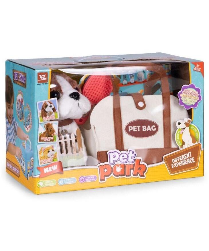 Plišana igračka pas dolazi sa torbom za nošenje i četkom za negu, čineći funkcionalan set namenjen deci starijoj od 3 godine.