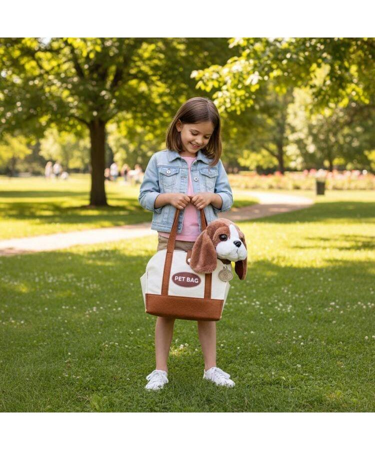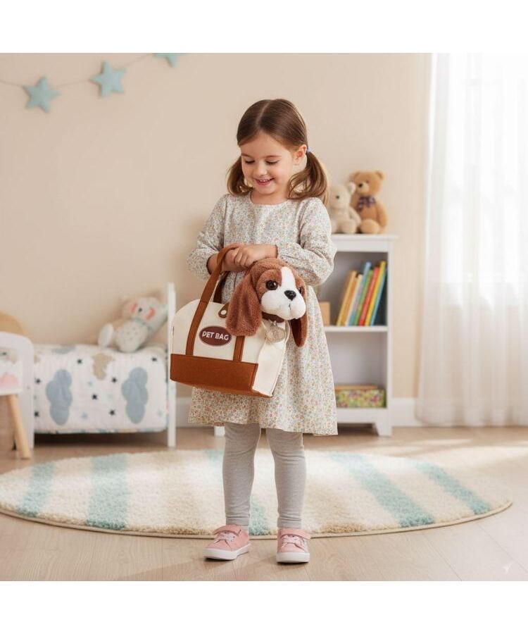 Torba je kompaktna i lagana, što omogućava detetu da lako nosi igračku kod kuće, u vrtiću ili na kratkim izletima. Uključena četka omogućava detetu da češlja psa, učeći ga odgovornosti i brizi.