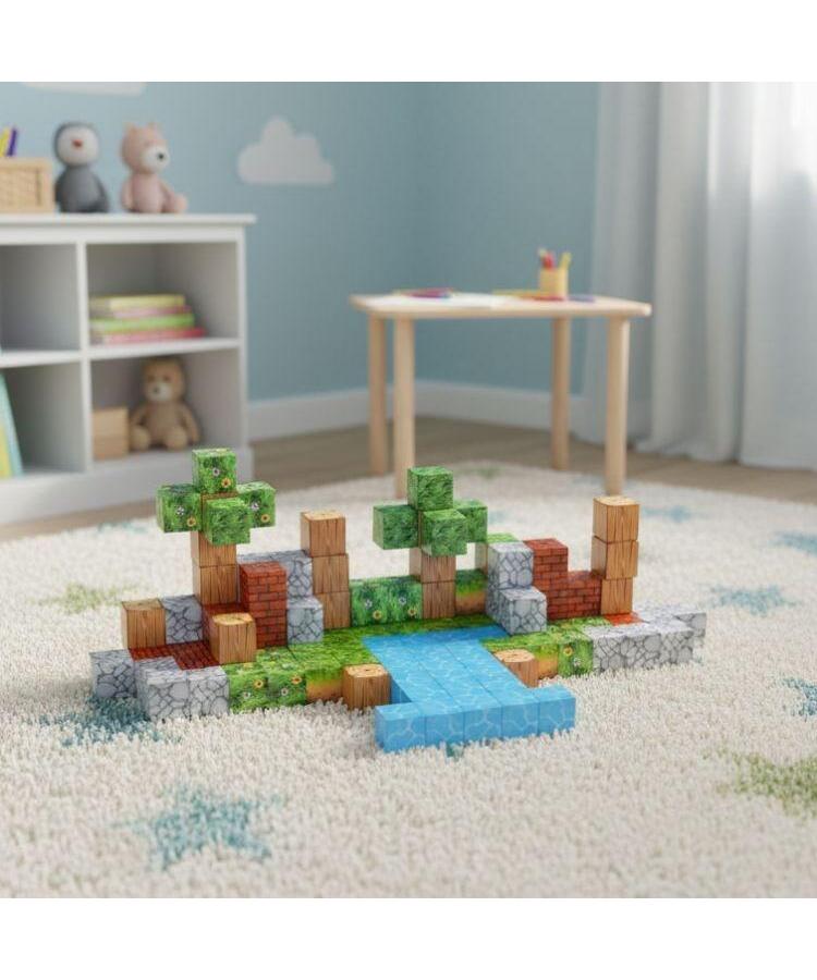Set sadrži 119 magnetnih kocki dimenzija 2 × 2 × 2 cm, što deci omogućava kreiranje neograničenog broja konstrukcija – od jednostavnih kula do složenih 3D struktura.