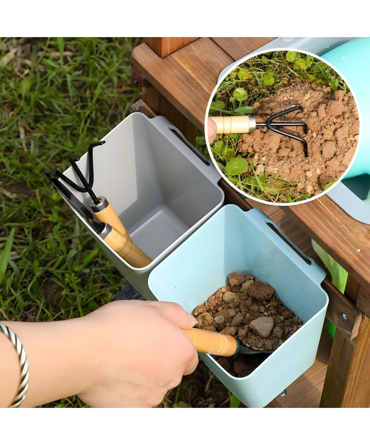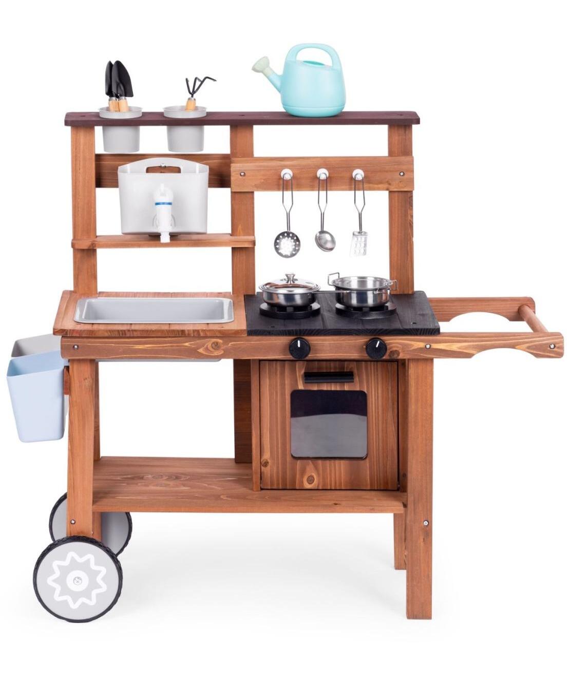 ECOTOYS spoljna drvena kuhinja sa dodacima za igru u pesku i blatu TL814004