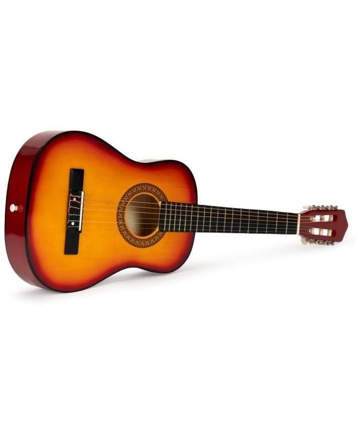 Drvena gitara marke ECOTOYS namenjena je deci od 3 godine.