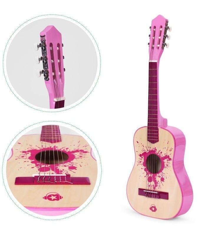 ECOTOYS velika klasična drvena gitara za decu sa 6 žica Roze HX18022-30 PINK