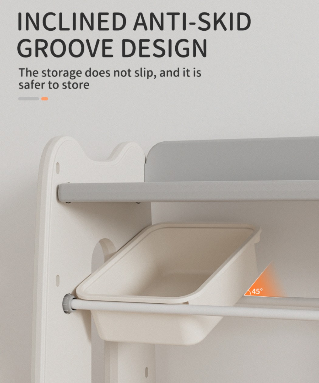 Ova lepa i kvalitetna polica veličine mališana dizajnirana je tako da omogućava mališanima da samostalno dohvate i rasporede svoje omiljene igračke, razvijajući veštine i samopouzdanje. Na taj način, održavajući sobu čistom i urednom, deca mogu da razviju dobre navike od ranog uzrasta.
