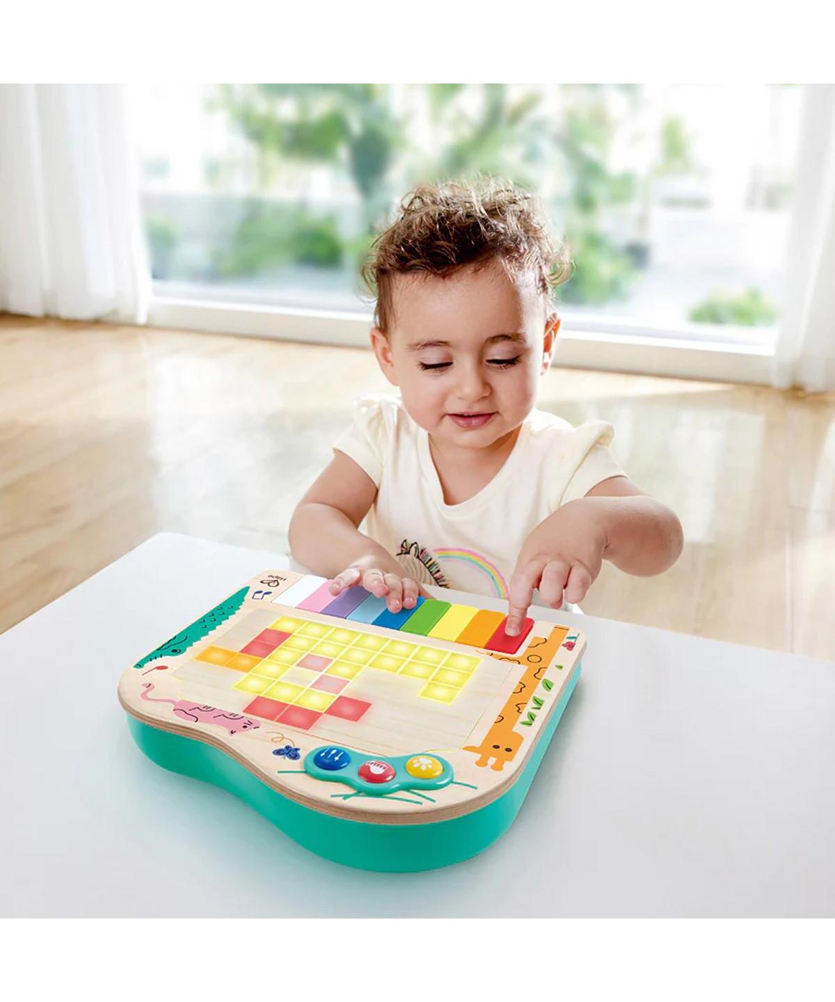 Sa tri zanimljiva režima igre, deca mogu da istražuju melodije, upoznaju pikselizovane životinje i njihove zvuke, kao i da nauče da sviraju pesme uz vođene svetlosne signale. Savršen za razvoj fine motorike, prepoznavanja boja i ritma, ovaj interaktivni klavir pretvara učenje u čarobnu, senzornu zabavu.