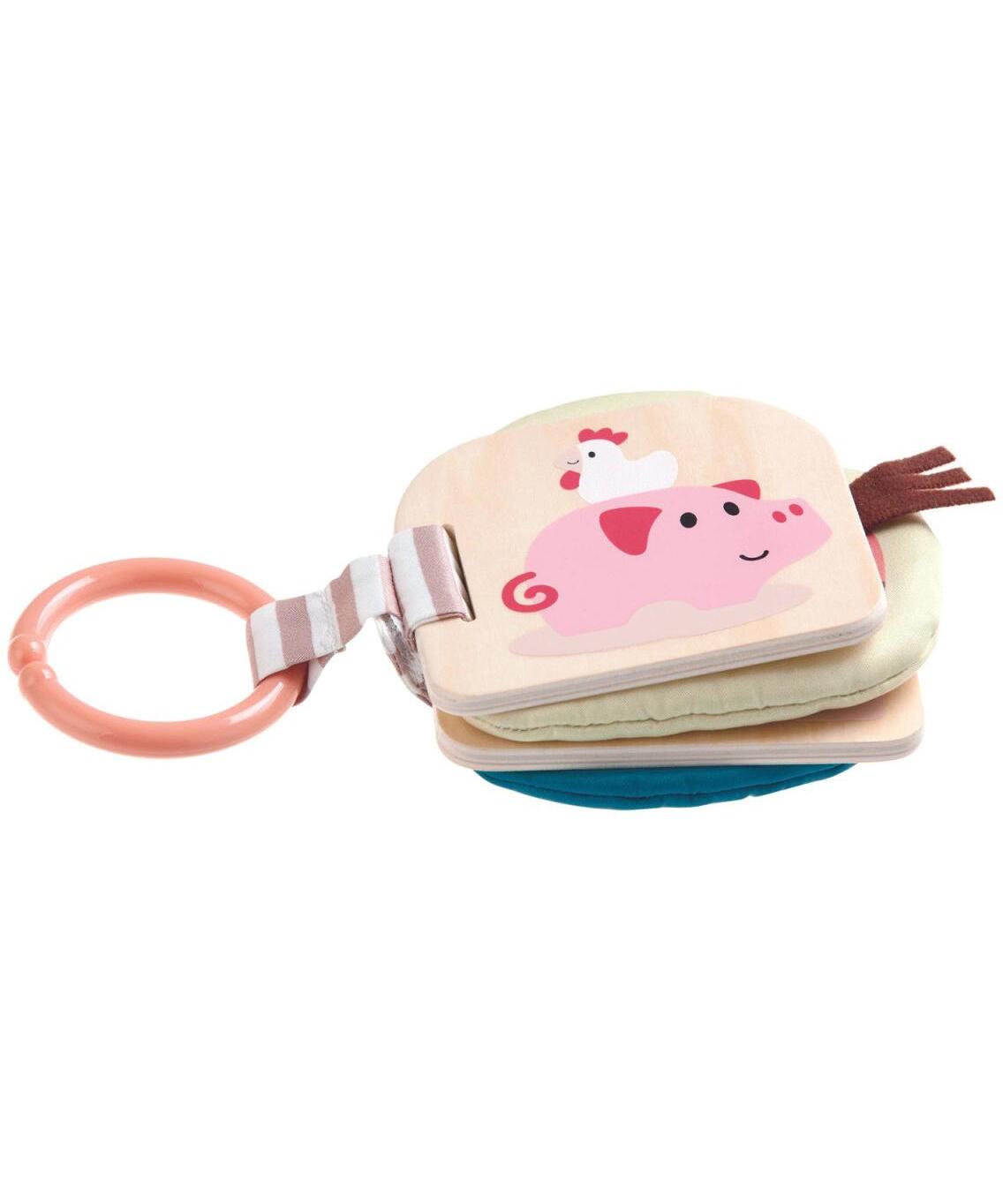 Zahvaljujući plastičnom prstenu, knjižica se lako može zakačiti za kolica, krevetac ili druge površine dostupne za igranje.