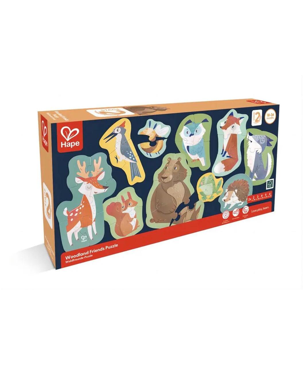 Set sadrži 10 prelepih slagalica sa motivima životinja iz šume, koje pružaju sate zabave inspirisane prirodom. Dok slažu delove slagalice, deca razvijaju samopouzdanje, finu motoriku i kreativnost. Zahvaljujući različitim nivoima težine, slagalice rastu zajedno sa detetom. Kao dodatni bonus, deca kroz igru uče o različitim životinjama, njihovim staništima i ponašanju.