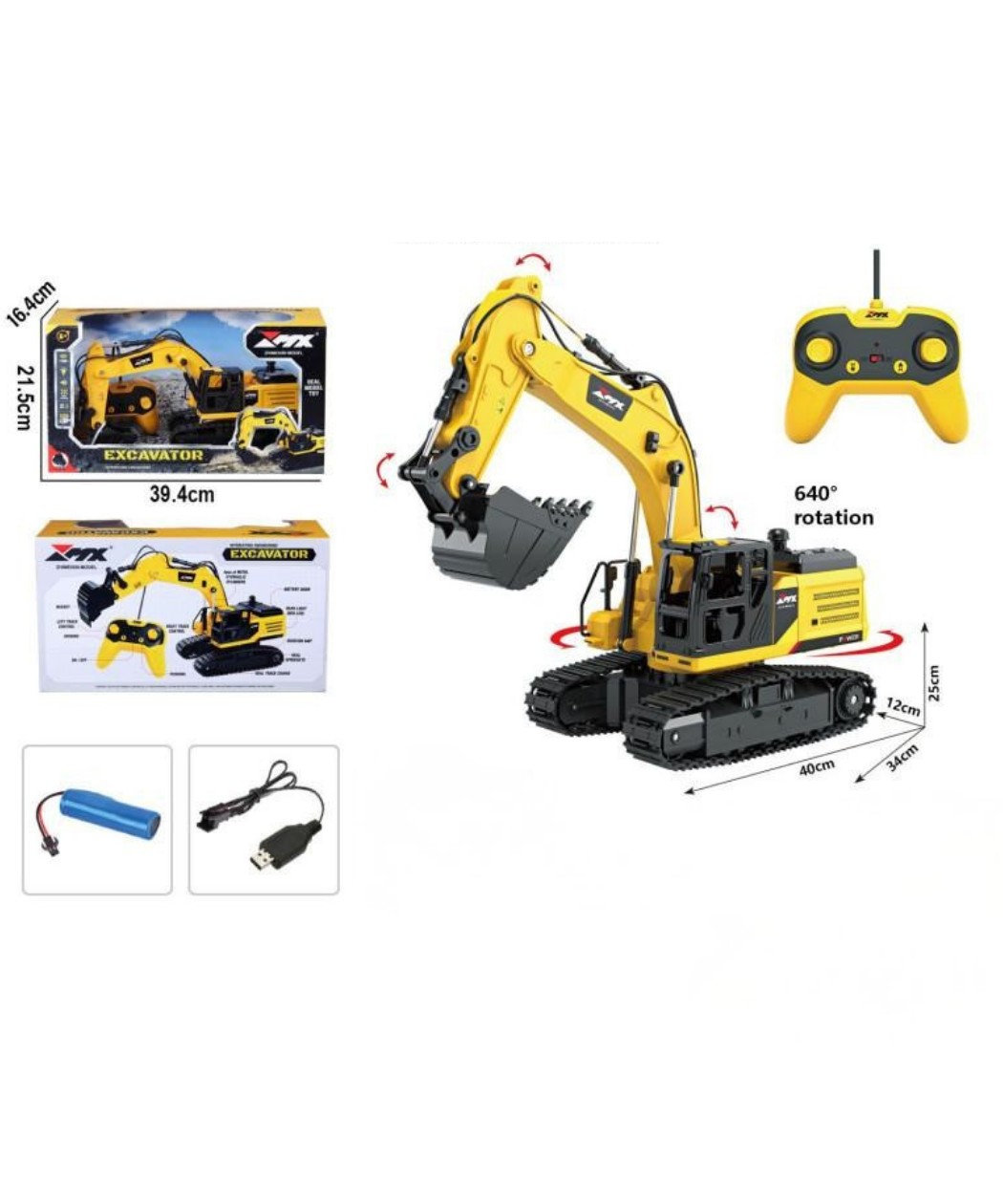 Daljinski upravljač omogućava više smerova kretanja: napred, nazad, levo, desno.Pokretna kašika i gornji deo kabine, koji se mogu okretati do 640° za maksimalnu pokretljivost.