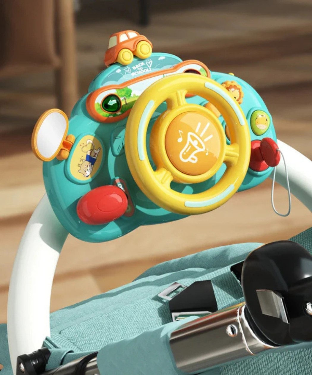 Vaš mališan će voleti da se pretvara da vozi sa igračkom volana, koja uzrokuje da se slatki automobil na vrhu pomera napred-nazad, simulirajući pravo iskustvo vožnje.