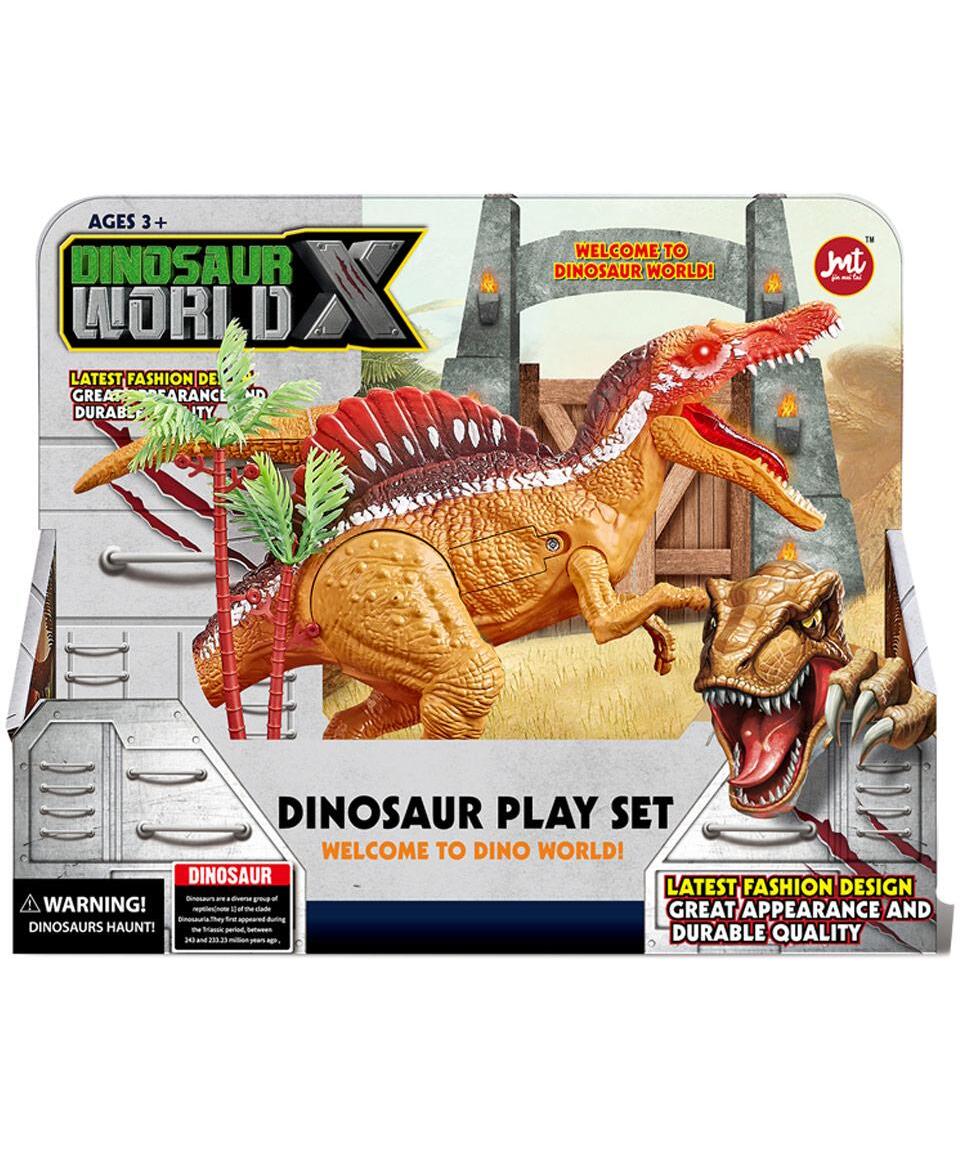 Set uključuje dinosaurusa sa svetlećim očima i jezikom, pokretnom vilicom i kandžama, uz zvučne efekte, kao i drvo palme.