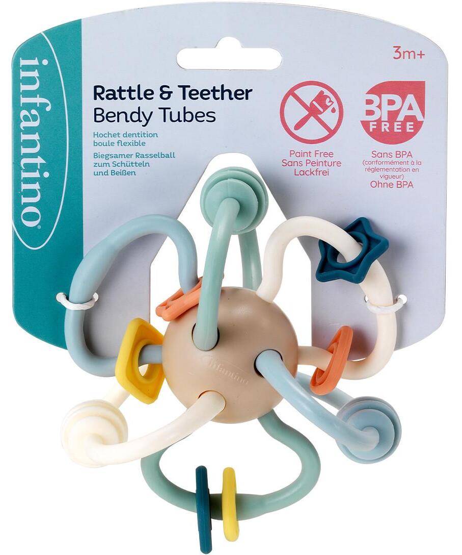 Mališani će obožavati da istražuju oblike i teksture ove lagane interaktivne igračke! Protresi, zavrti, pomeraj, savijaj, zveckaj i grickaj – za potpunu senzornu stimulaciju.