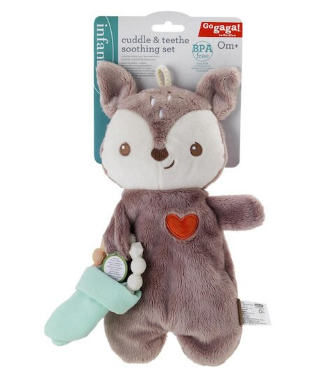 Uključuje mekanu, plišanu igračku koja pruža osećaj sigurnosti i postaje savršen drug za maženje. Zajedno sa teksturiranom silikonskom glodalicom, nudi umirujuće olakšanje za osetljive desni.