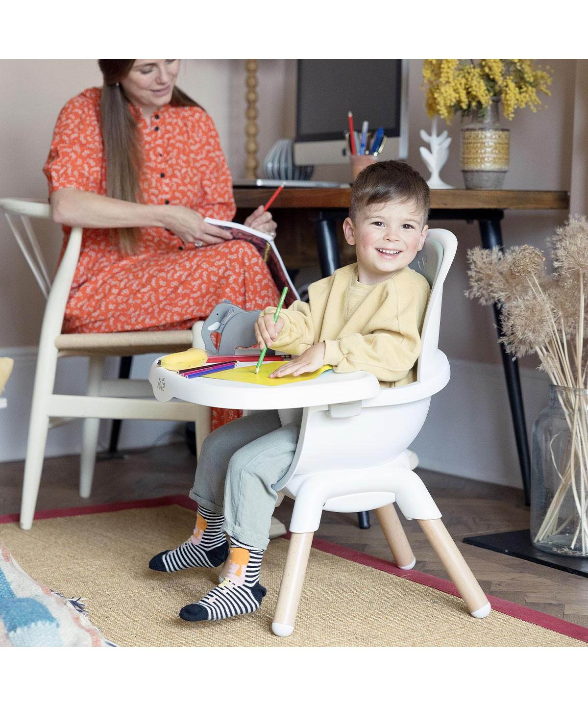Višenamenska 9-u-1 hranilica koja raste zajedno s vašim detetom – od bebe do većeg deteta. Podesiva po visini u 3 nivoa, idealna za upotrebu uz sto ili kuhinjski pult. Praktičan, fleksibilan dizajn koji se lako uklapa u svaki dom.