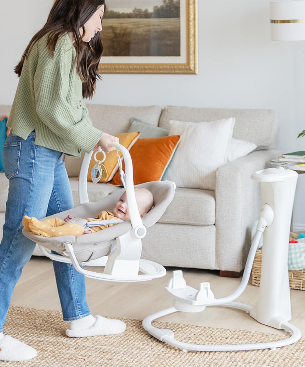 • Lako podignite sedište da biste ga koristili kao prenosivu ljuljašku