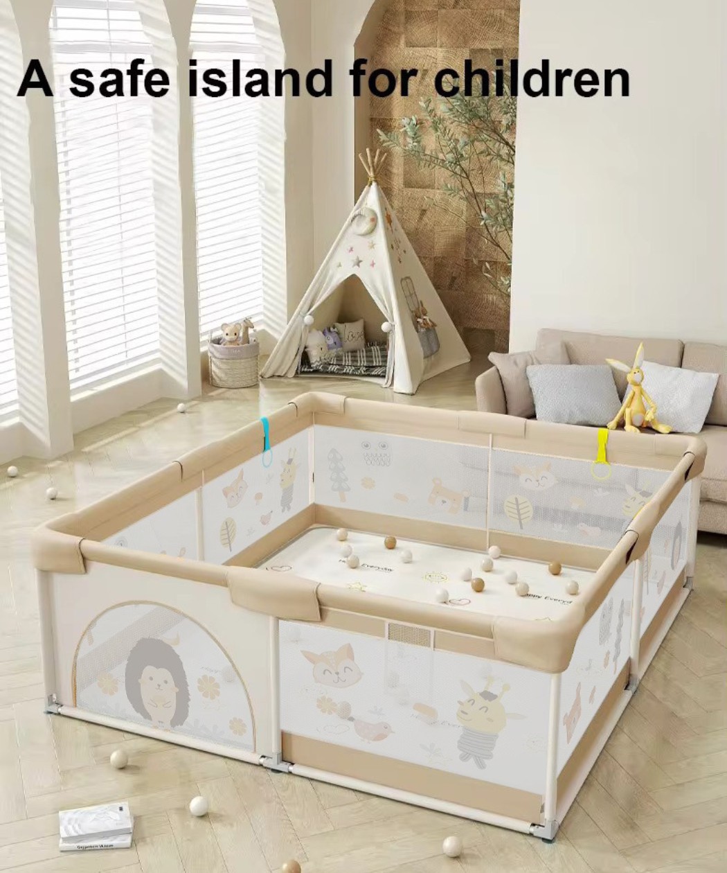 Naziv proizvoda: JOY ogradica za bebe 150x180 cm Print Bež