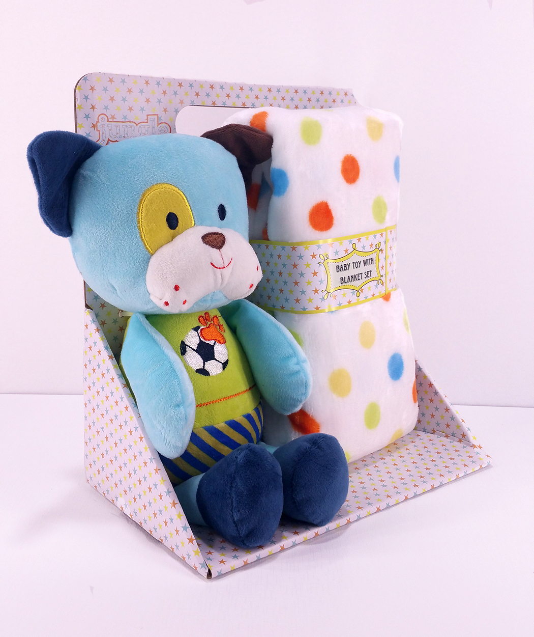 Opis proizvoda: • Za uzrast od rođenja • Poklon set ćebe sa igračkom u sebi sadrži plišanu igračku sa mekanim ćebetom koje će beba obožavati od prvog dana • Proizvod idealan za poklone • Sastav: 100% poliester • Dimenzije ćebeta: 90 cm x 75 cm • Dimenzija plišane igračke: 25 cm