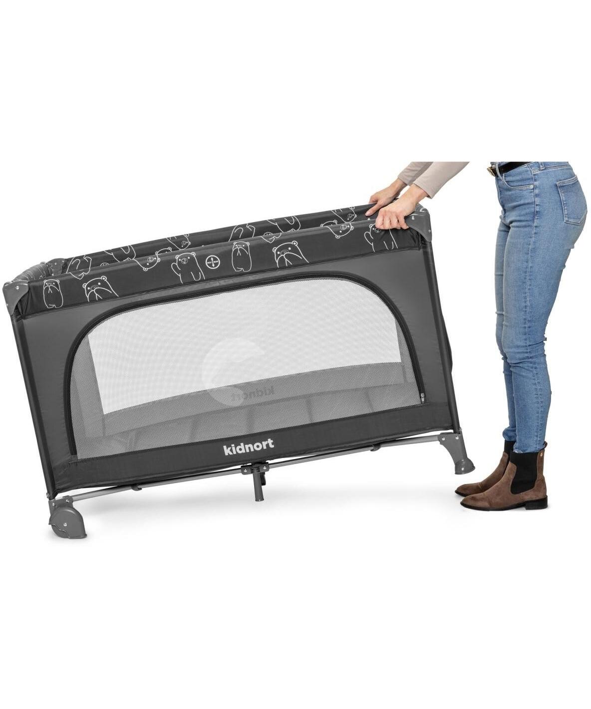 Kidnort prenosivi krevetac Grotta se brzo i lako sklapa i rasklapa, omogućavajući vam da ga spremite ili prenesete bez napora.