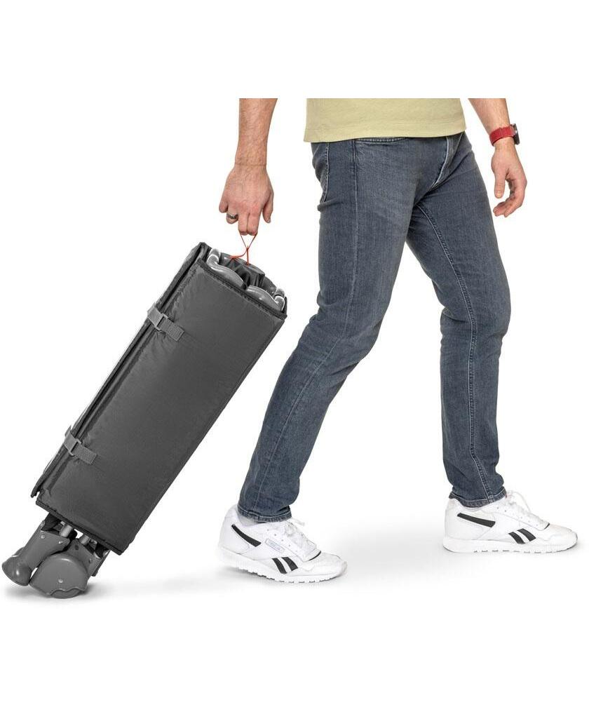 Nakon sklapanja zauzima malo prostora i lako stane u automobil, prtljažnik ili garderober — odličan za porodična putovanja, odmore i posete.