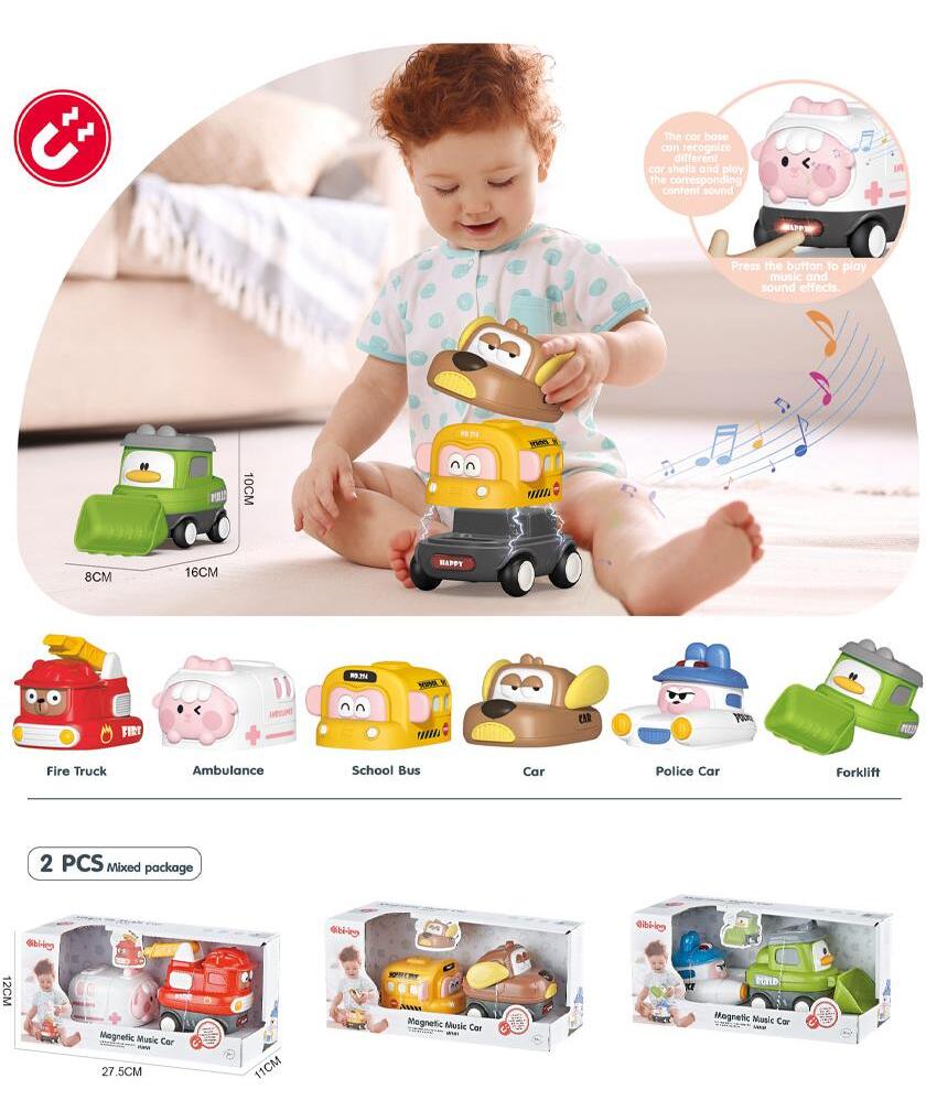 Set od 2 namenska vozila sa magnetima, muzikom i svetlosnim efektima koji će oduševiti mališane od 18 meseci i naviše.