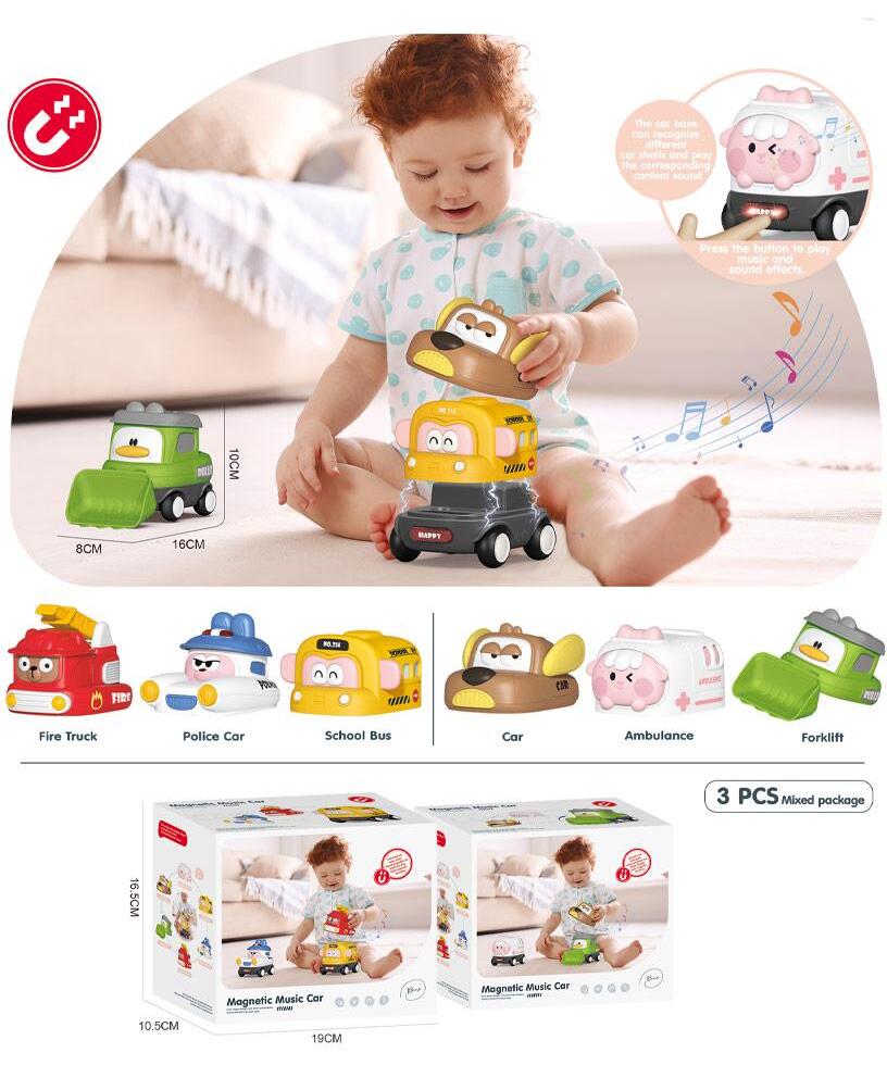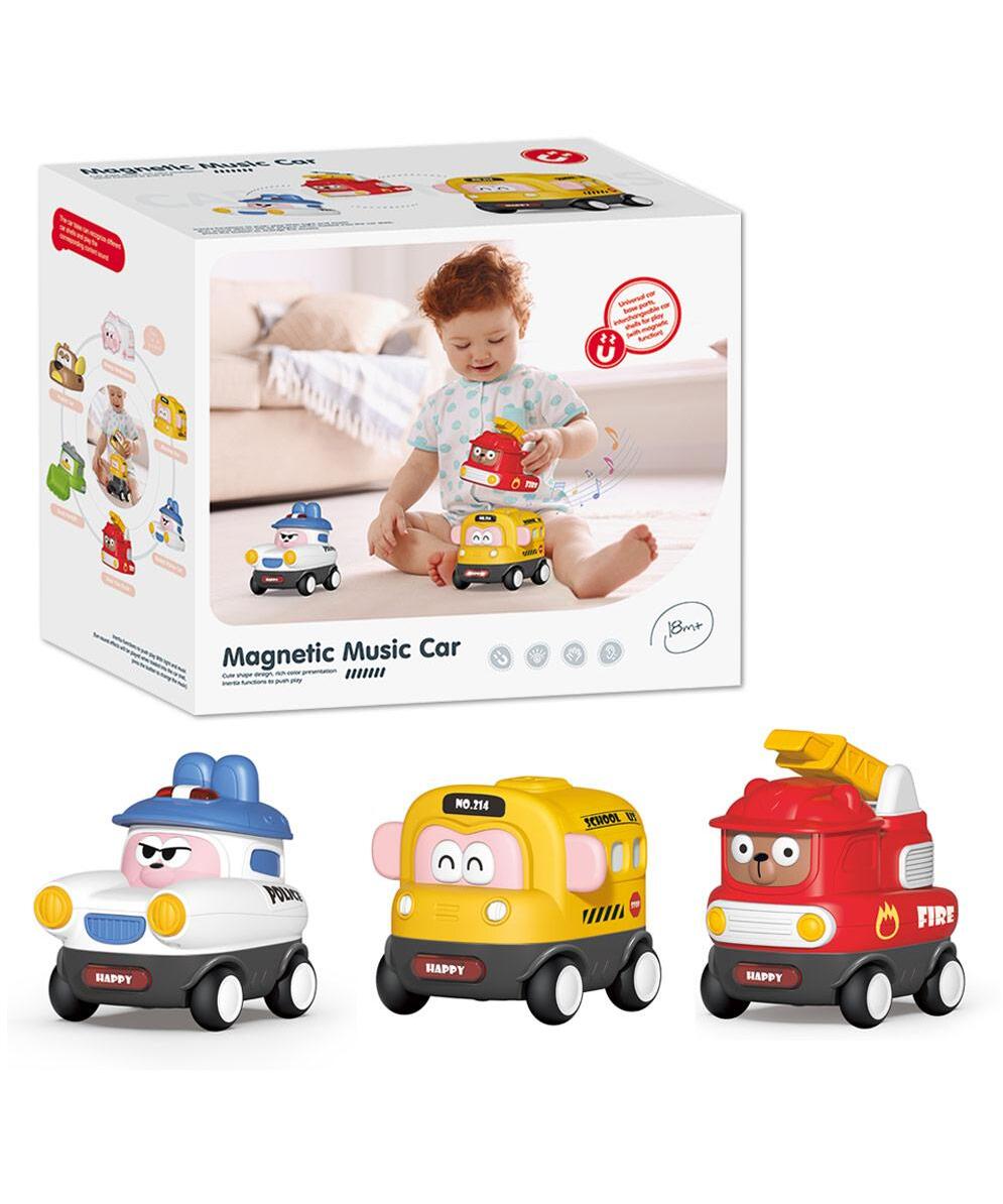 Set od 3 namenska vozila sa magnetima, muzikom i svetlosnim efektima koji će oduševiti mališane od 18 meseci i naviše.
