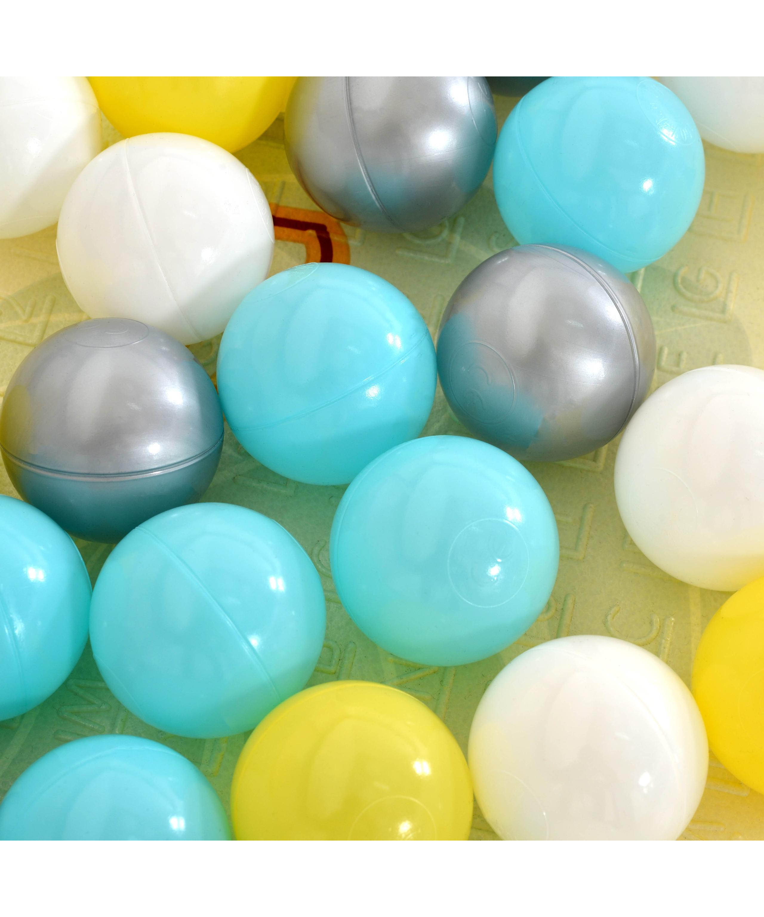 • U setu dolazi dvostrana XPE penasta podloga kao i 60 šarenih loptica koje podstiču igru i razvoj koordinacije.