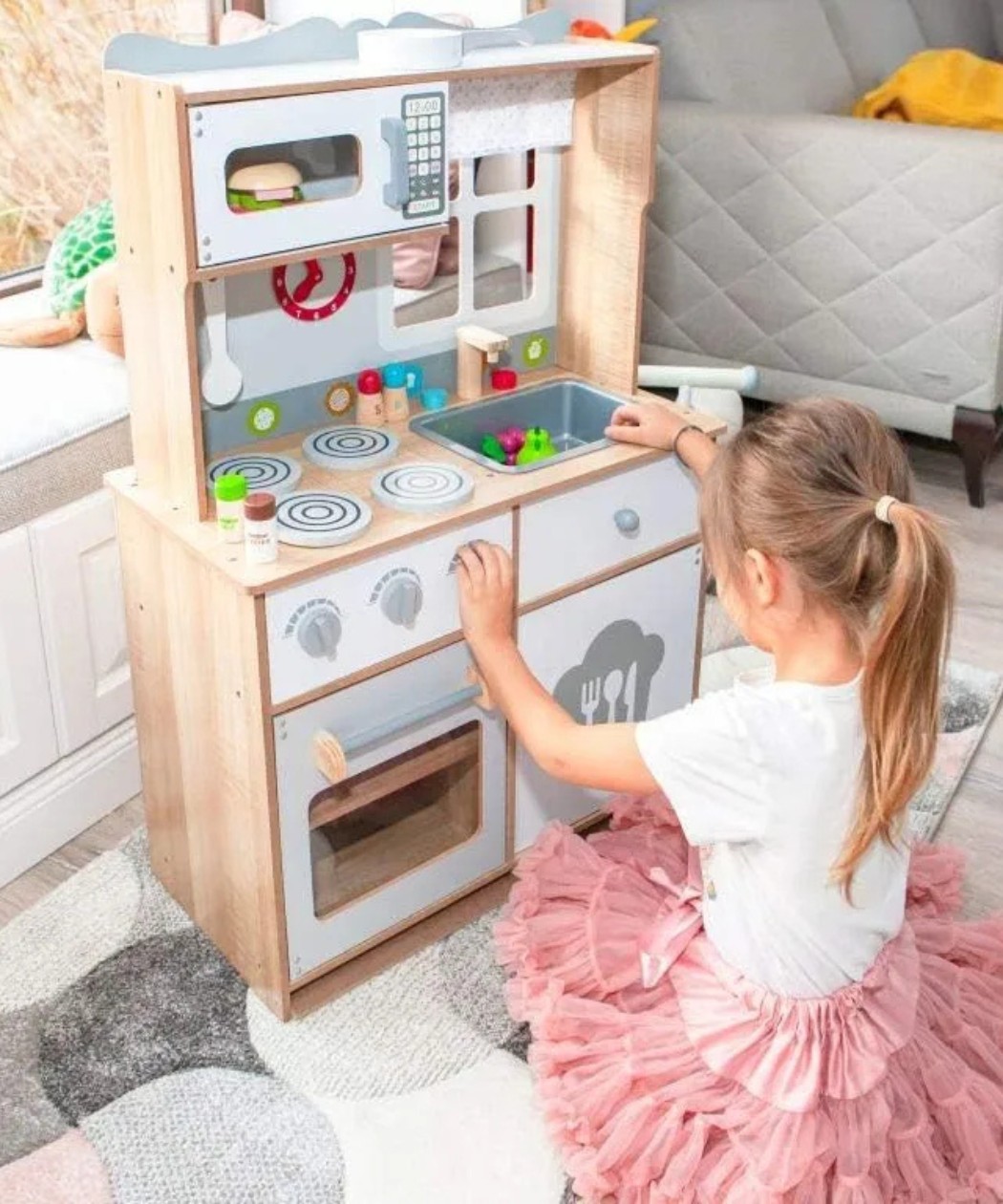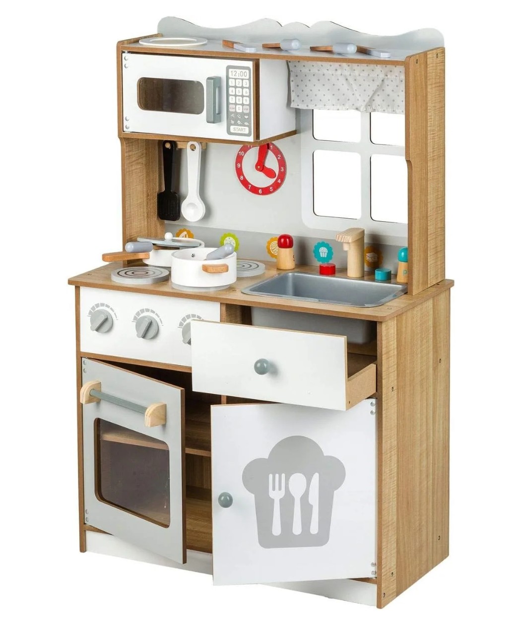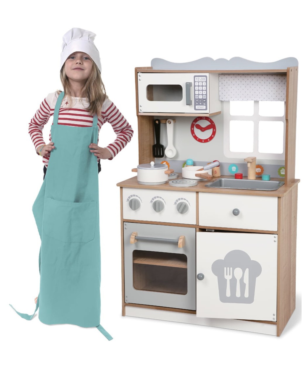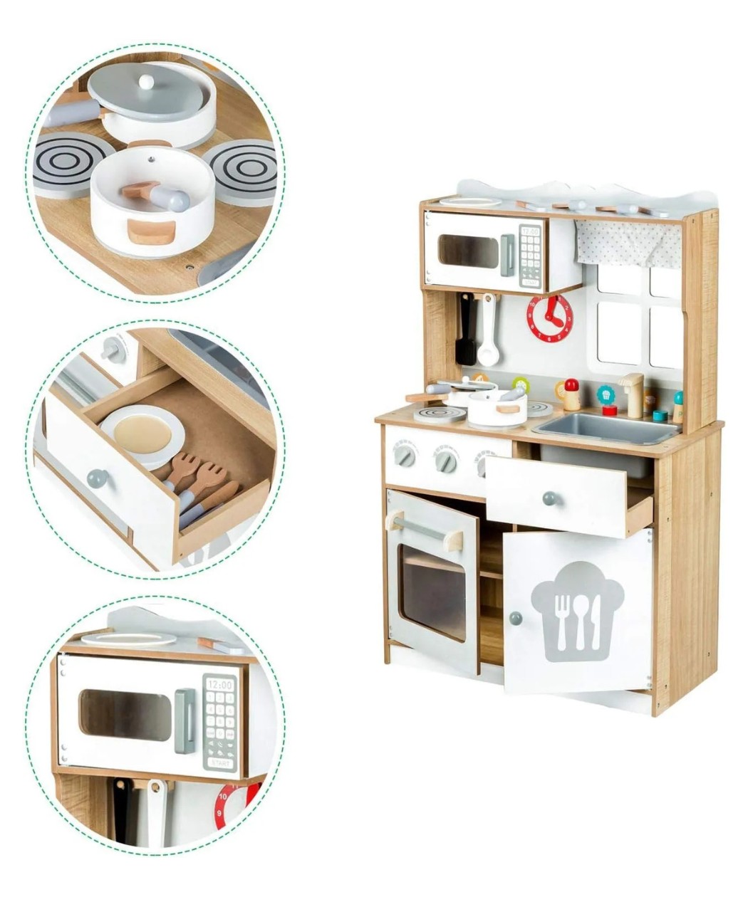Moni Toys drvena kuhinja omogućava mališanima da razviju svoje kulinarske veštine i prirede obroke za celu porodicu. Sa prijateljima, mogu stvarati kulinarske čuda i uživati u igri.