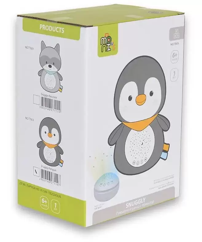 Mekani pingvin projektuje zvezde u nežnim, promenljivim bojama, a može se izabrati i jedna omiljena nijansa.