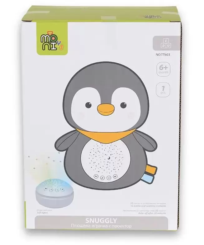 Uz 10 umirujućih melodija, zvuke prirode i beli šum, pomaže detetu da se brže smiri i lakše zaspi.