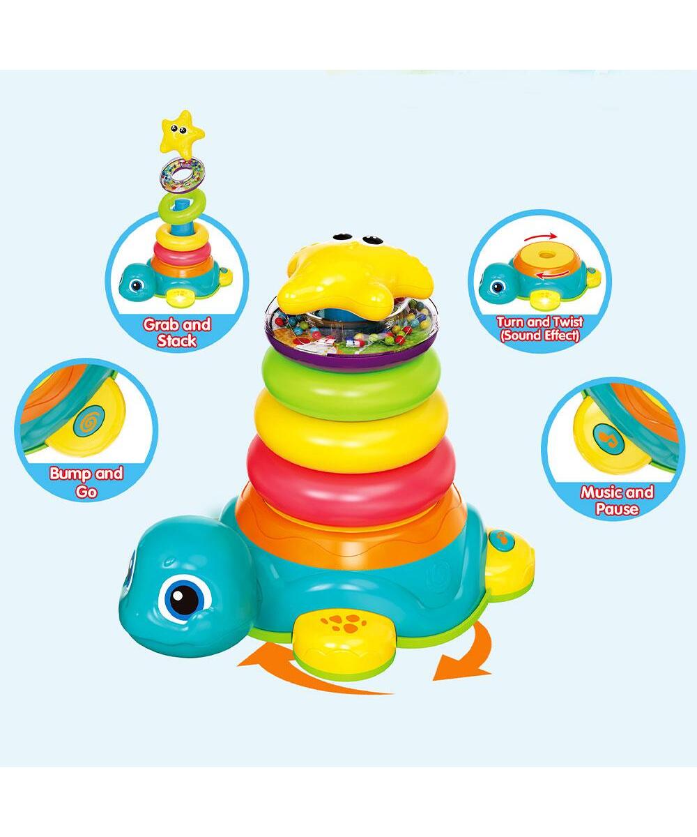 Muzička Dondoloto Kornjača sadrži prstenaste elemente koji se mogu slagati od najvećeg do najmanjeg, dok ujedno emituje zvučne efekte.