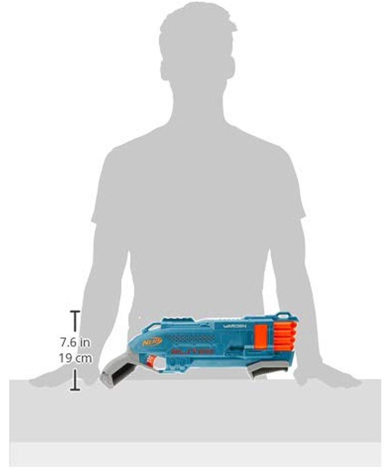 Pucaj po dva metka odjednom pomoću pump-akcionog mehanizma, ili ispaljuj svih 8 metaka brzo koristeći slam-fire akciju. Samo povuci klizač napred-nazad da pripremiš blaster – baterije nisu potrebne!