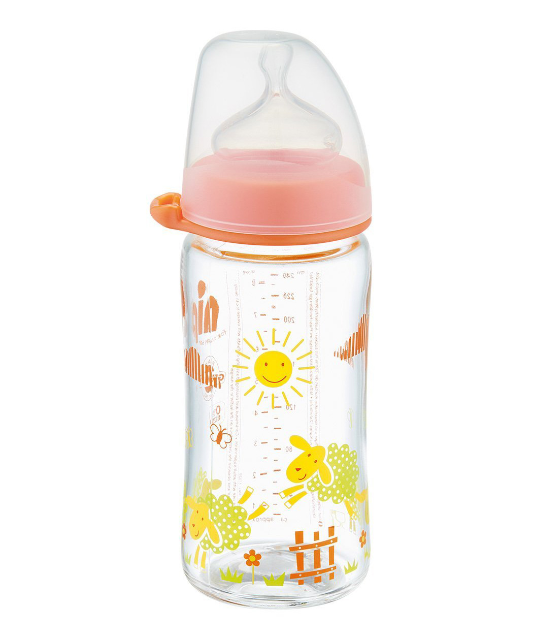 Interna šifra proizvoda: 14229 Naziv proizvoda: Nip staklena flasica sa sirokom otvorom 0m+ 240 ml narandzasta