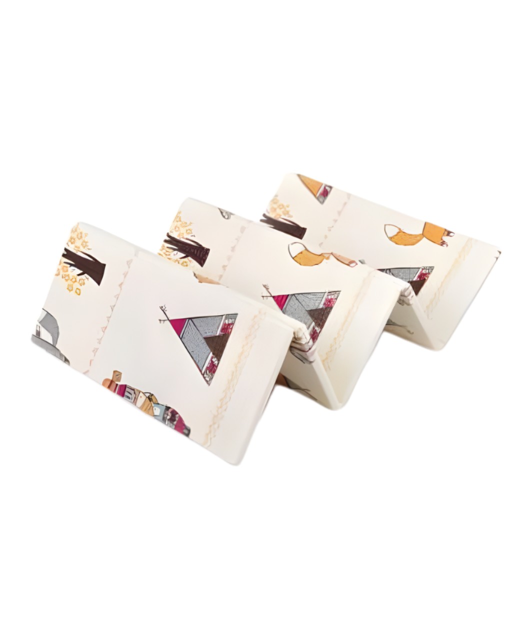 Motivi nisu slučajni. Jedna strana donosi mirnu šumsku priču sa lisicama, medama, drvećem, dok druga prikazuje razigrane indijanske scene sa lisicama, sovama, šatorima i totemima. Promenom strane menjate atmosferu igre i održavate detetovu pažnju bez dodatnih igračaka.