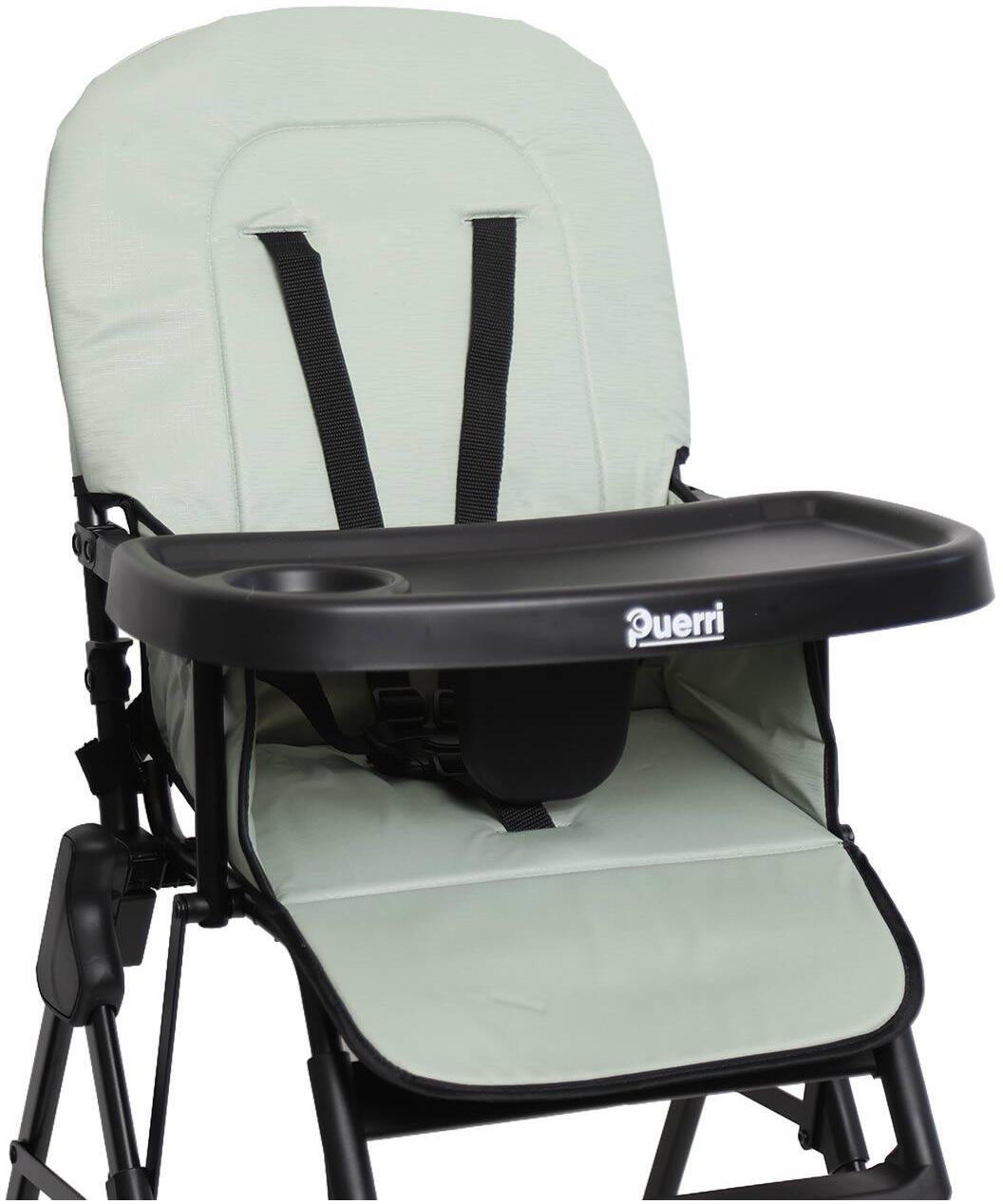 • Podesiv naslon za noge obezbeđuje dodatnu udobnost i prilagođava se potrebama deteta, dok podesiv poslužavnik omogućava veću praktičnost tokom hranjenja i igre