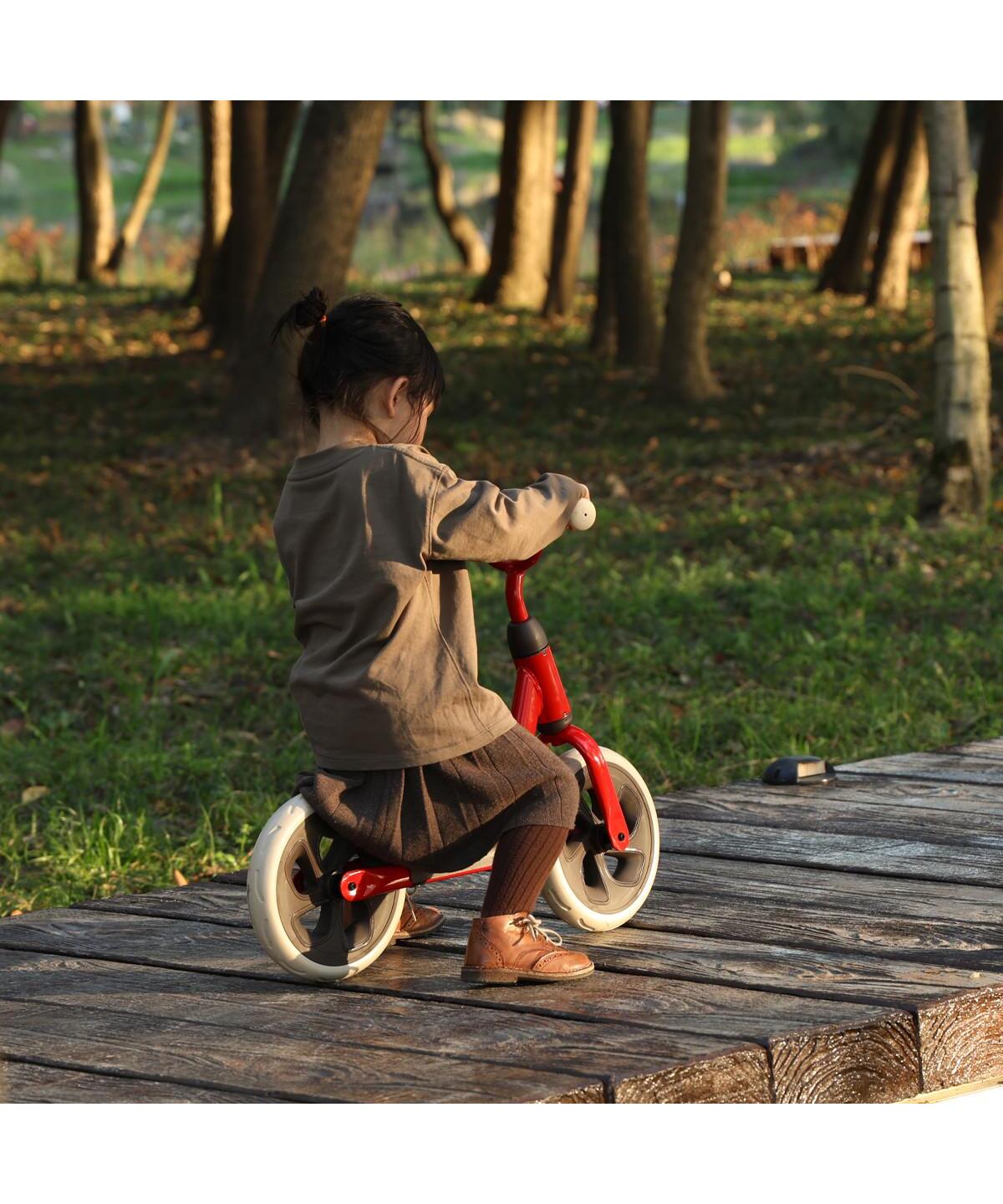 Bicikl dolazi sa čvrstim ramom, podesivom visinom sedišta i gumenim točkovima izrađenim od EVA materijala, otpornim na probijanje. To garantuje glatku i sigurnu vožnju po različitim terenima.