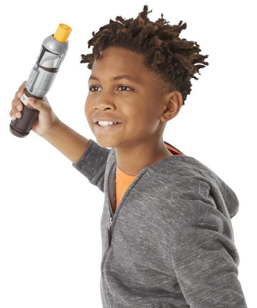 Teleskopski dizajn Star Wars the Mandalorian mača omogućava deci da sklope mač kako bi ga lakše poneli, i da ga posle opet razvuku! Mač se aktivira tako što se lagano zamahnete ispred sebe, a on se može teleskopski proširiti do dužine od 48 cm. Mač ne poseduje svetlosne i zvučne efekte.