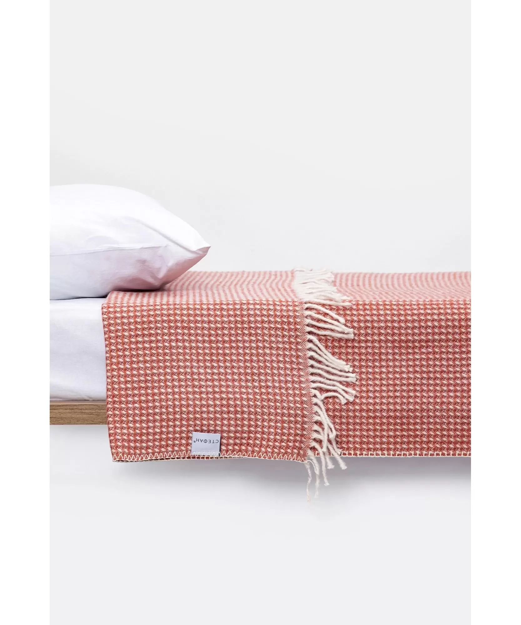 Ćebe Ravena unosi u dom osećaj živosti i topline. Njegova bogata crvena nijansa podseća na toplu večernju svetlost i stvara atmosferu udobnosti i domaćeg šarma. Diskretna tekstura i rese na ivicama dodaju elegantan završni detalj, čineći ovo ćebe savršenim za svaki prostor.