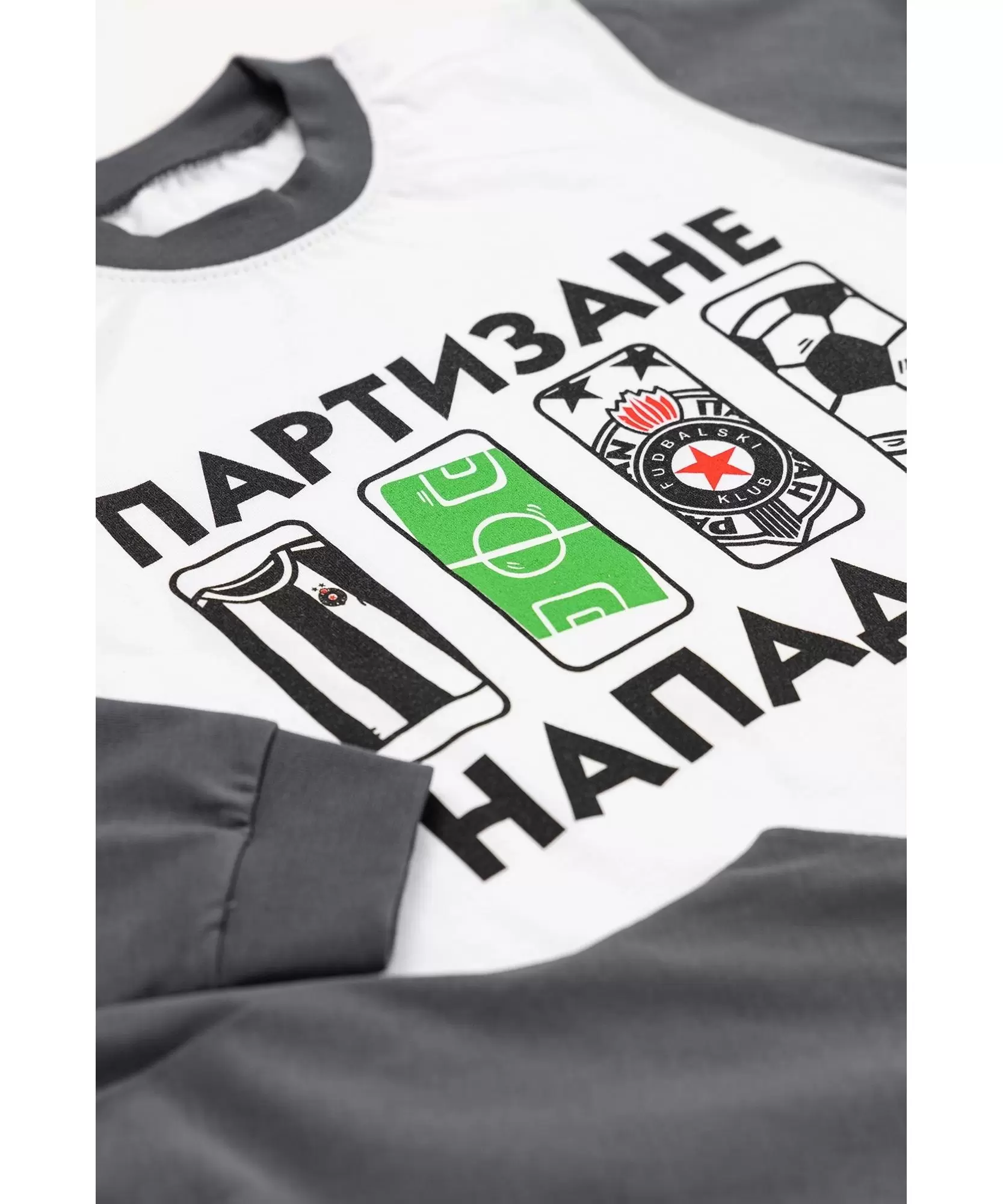 Dečija pidžama Partizan od 100% pamuka za uzrast 2–6 godina. Klasičan model, meka, udobna i savršena za male crno-bele navijače!