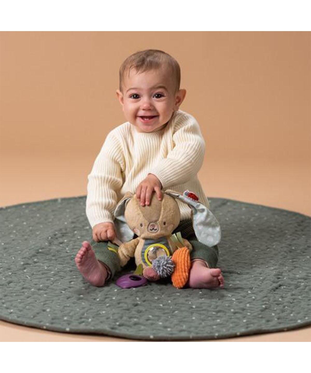 Ova divna mekana igračka i glodaliica dizajnirana je da vašem mališanu pruži multi-senzorsko iskustvo. Uz različite teksture, šare i zvukove obezbediće da male ruke vaših mališana ostanu aktivne.
