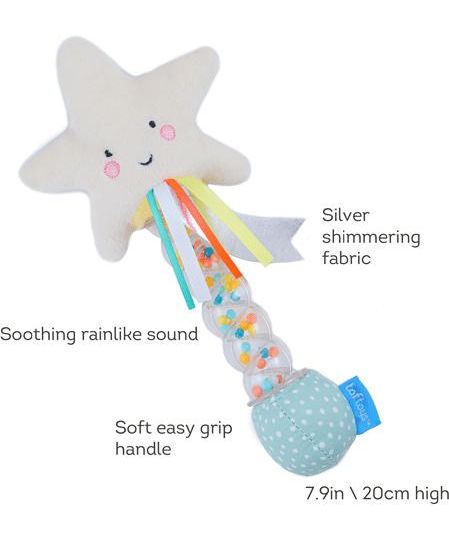 Zvezda zvečka pruža umirujuće zvuke kapi kiše koje će mališani voleti.